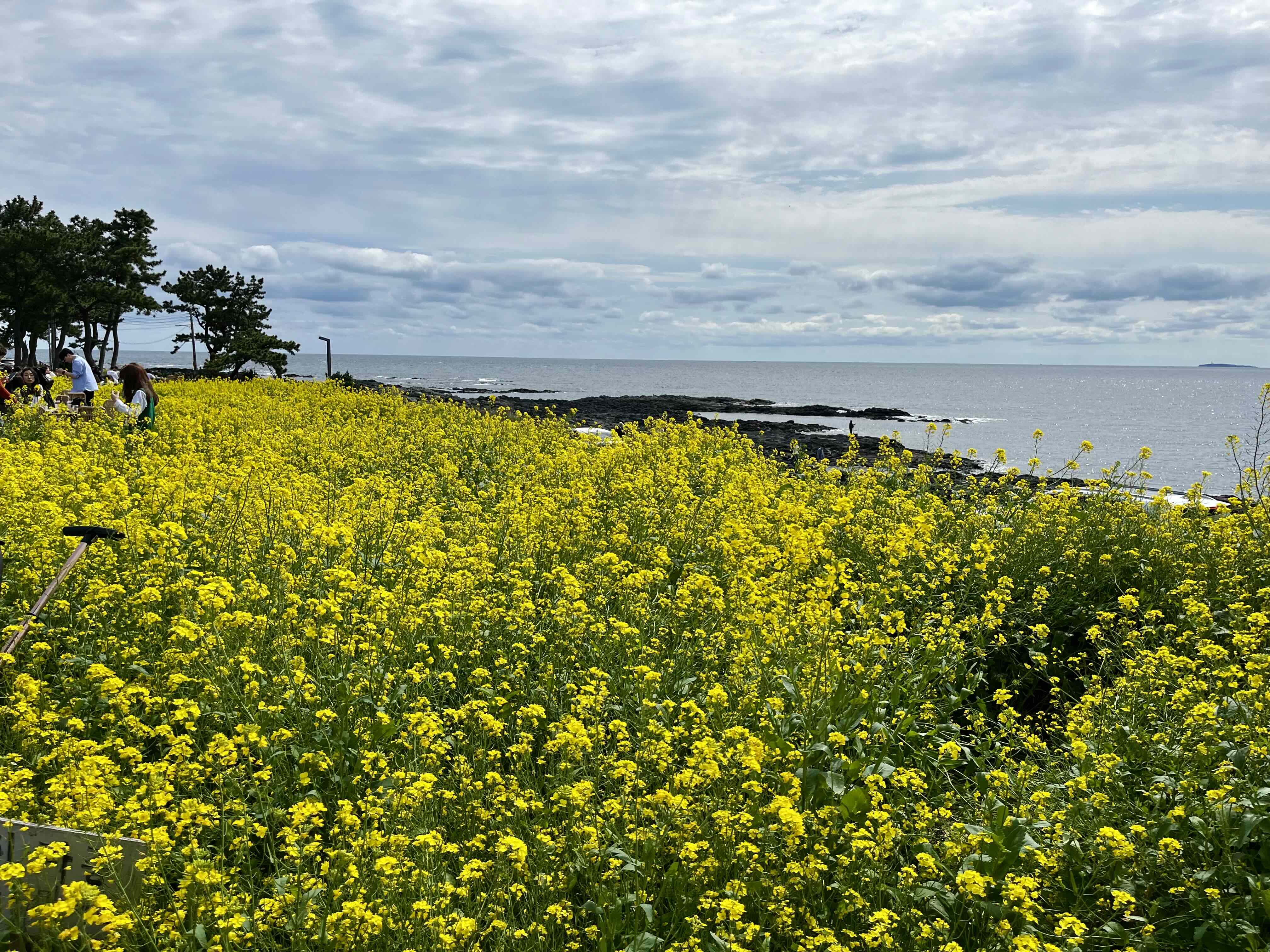 정상 부분에 펼쳐진 녹지에도 군데군데 유채가 꽃을 피웠다.