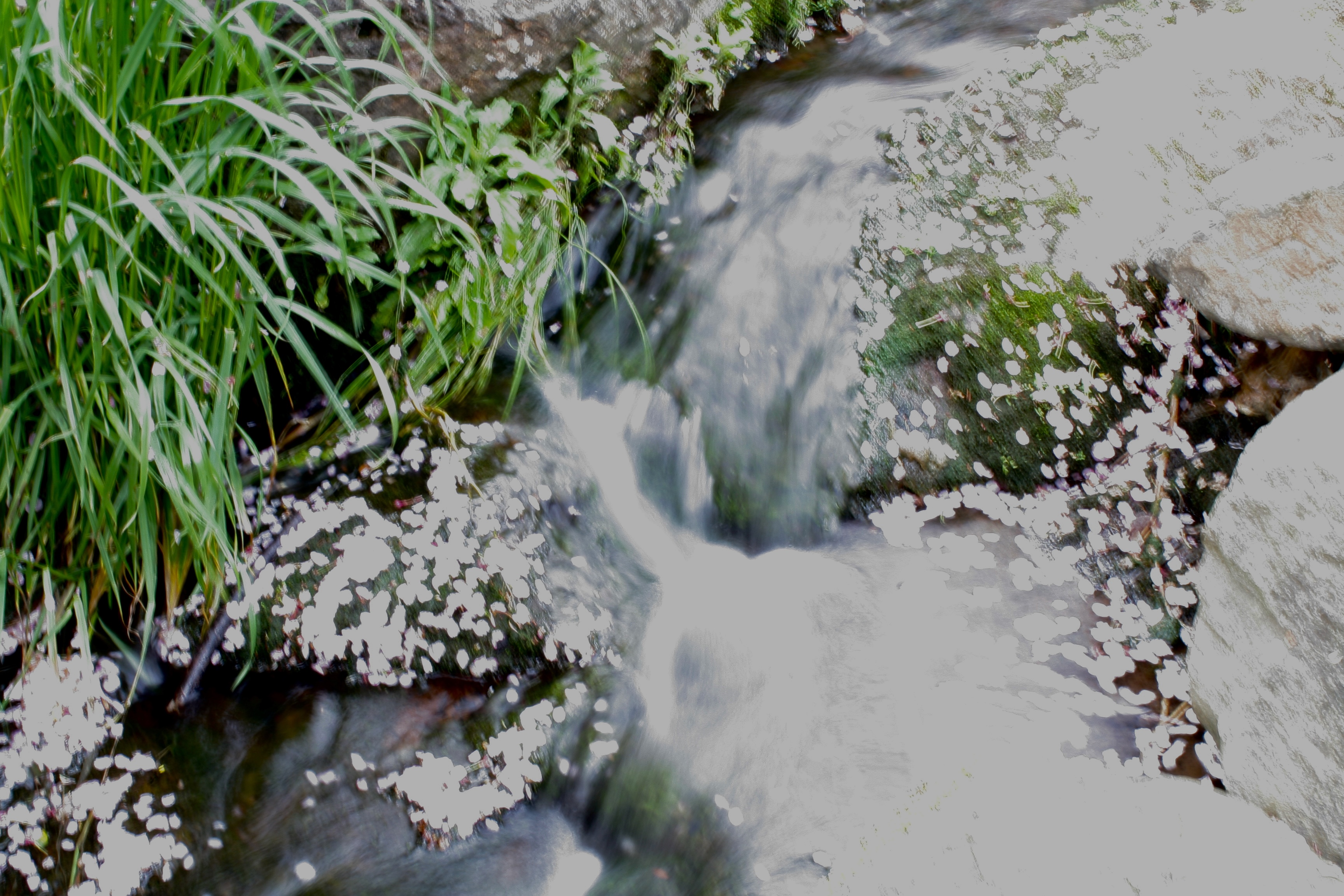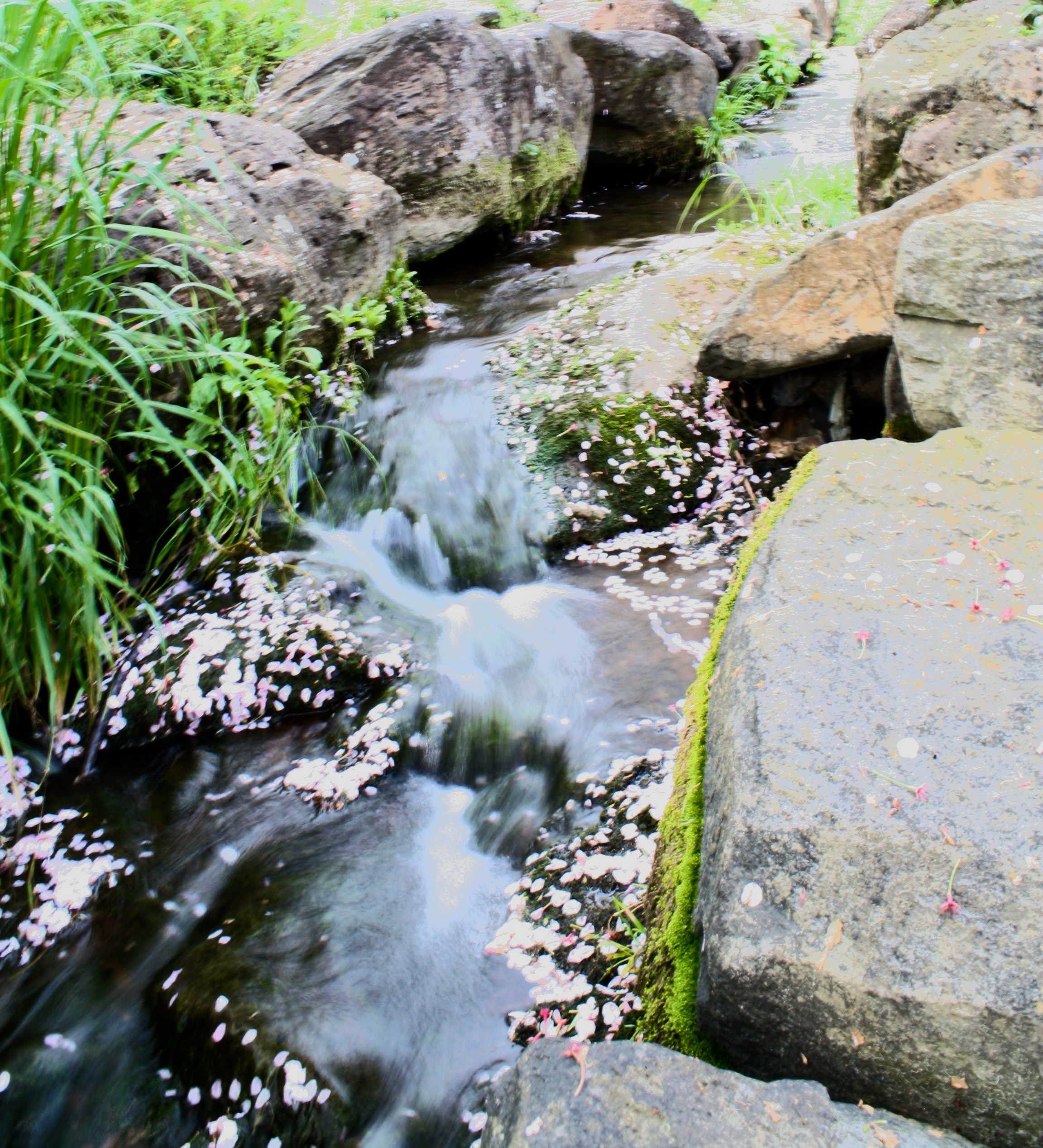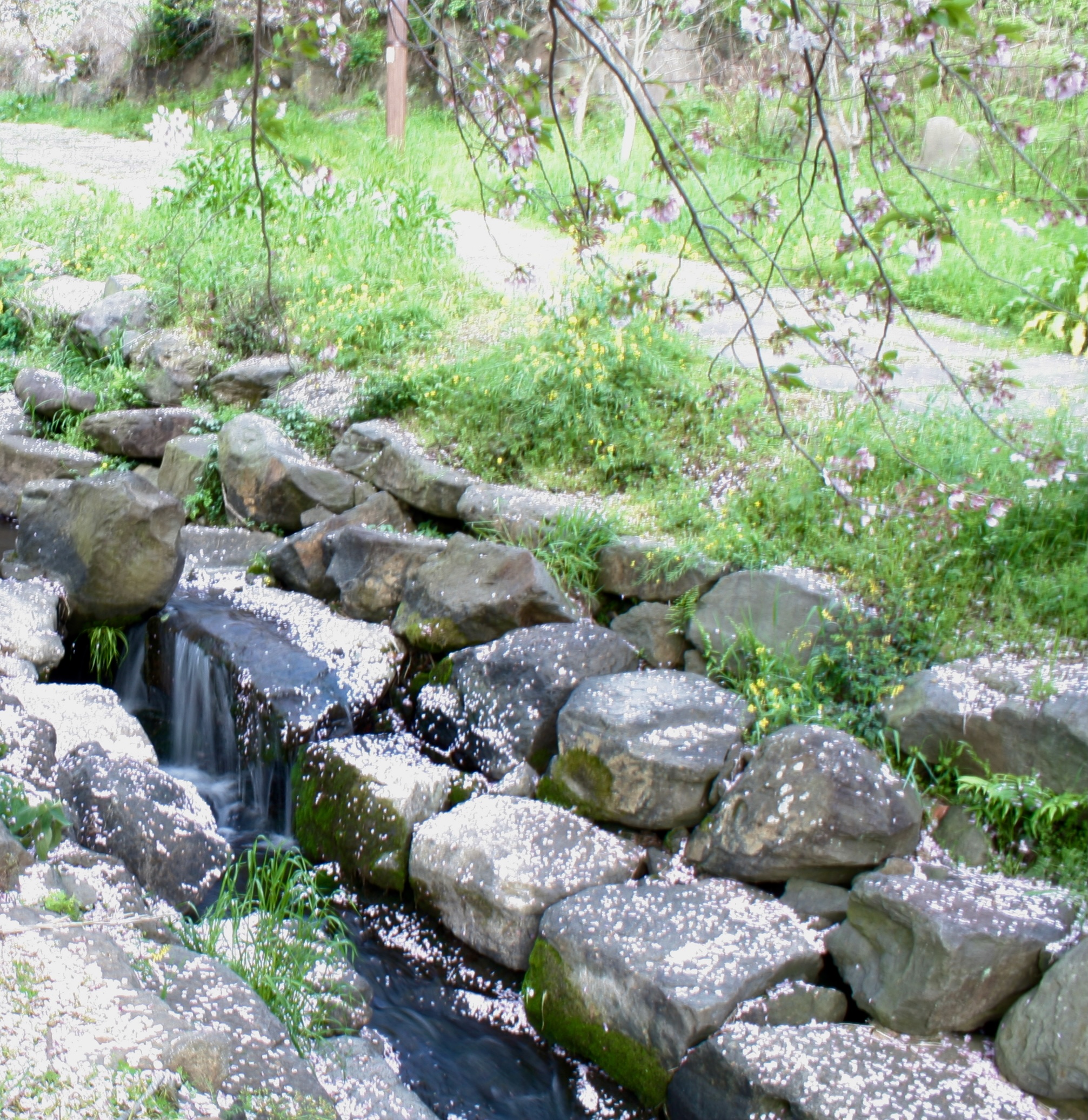 개울물 위로 떠내려가는 꽃잎이 또 다른 정취를 자아낸다.