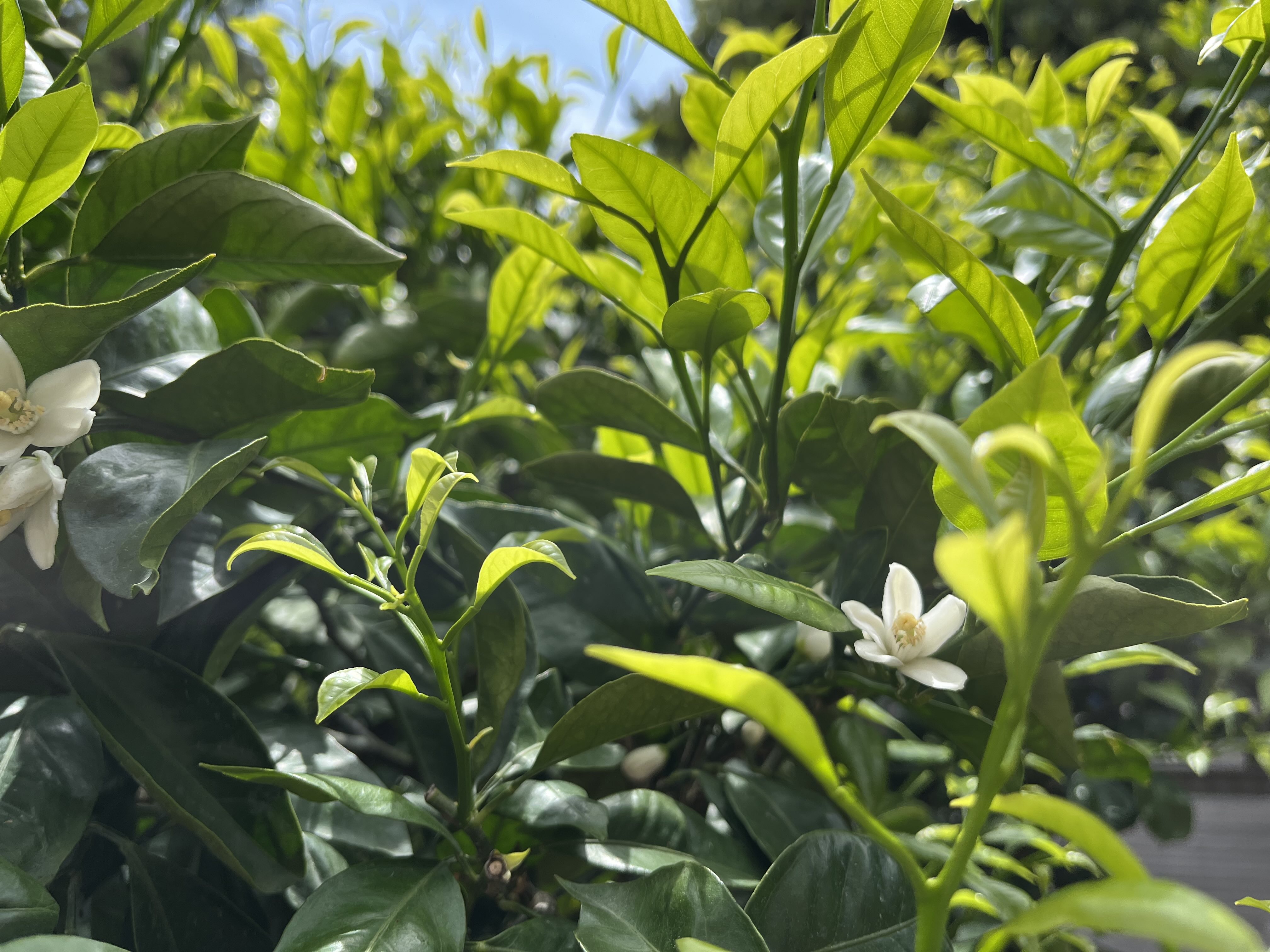 막 피기 시작한 귤꽃에서 달콤한 귤향이 났다.