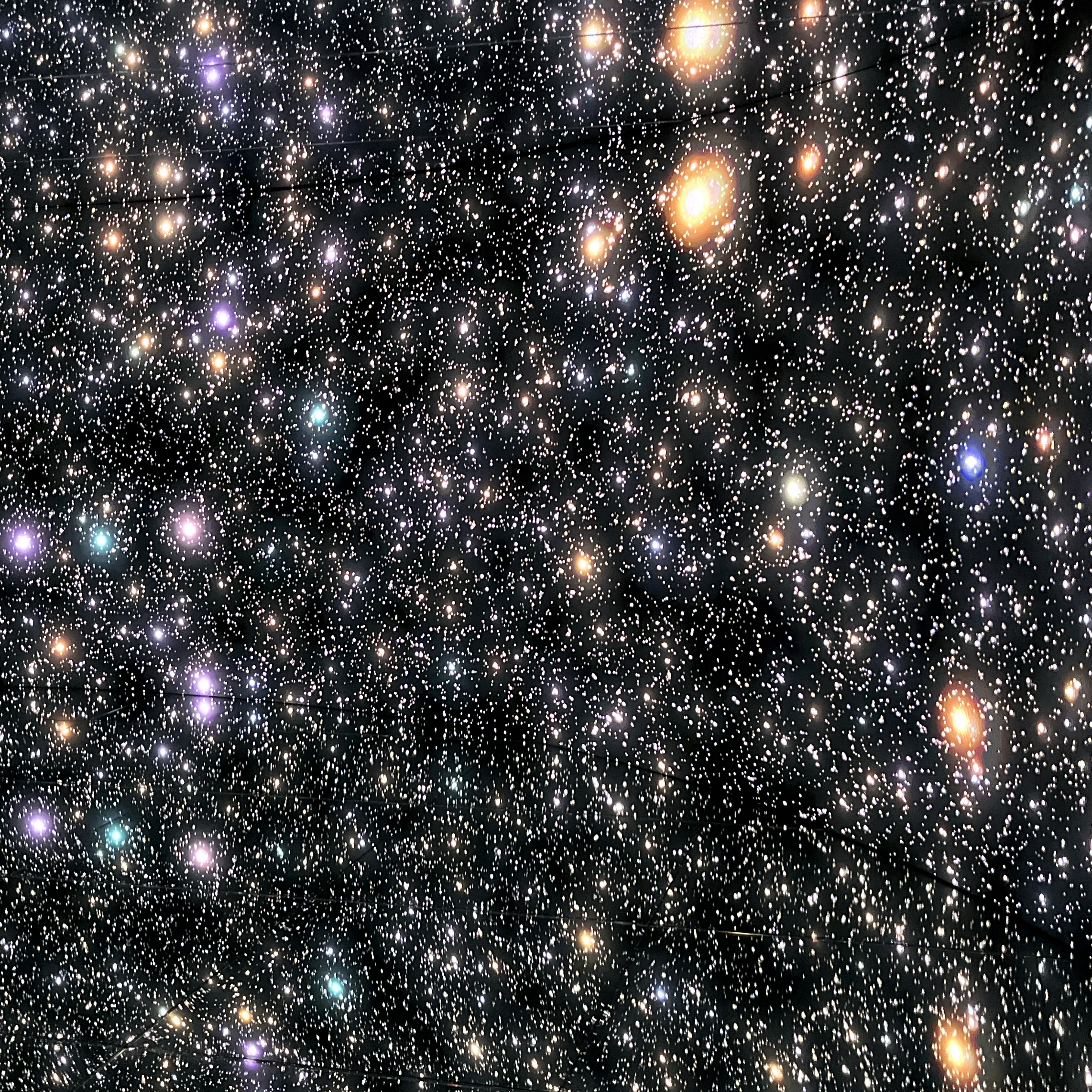 거울로 둘러싸인 공간에서 빛나는 수백 개의 LED 패널이 우주 같은 분위기를 만들었다.