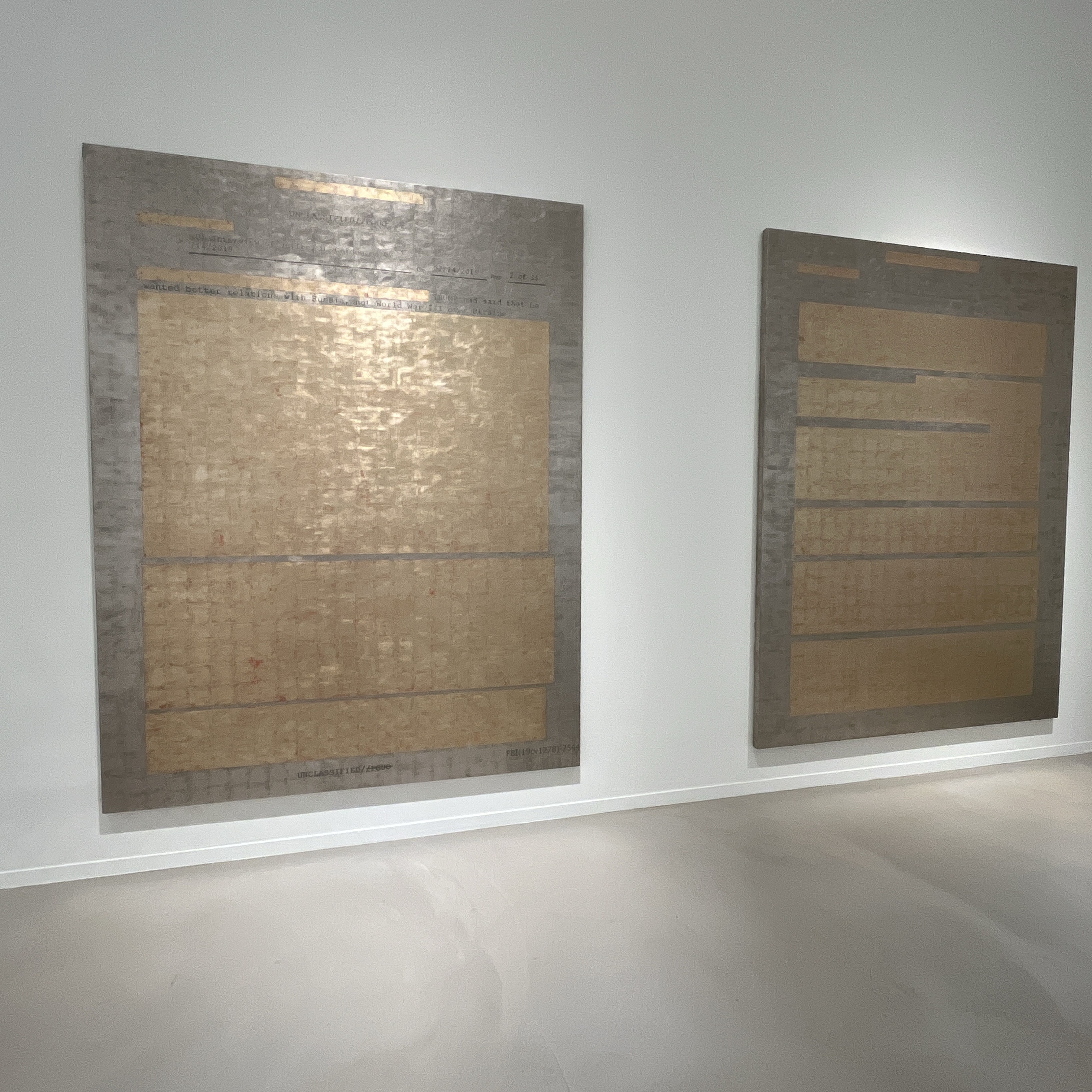 전시장에 들어서며 처음 만난 작품은 모나 하툼의 작품이다. 천장에 매달린 콘크리트 조각들의 냄새와 무게감이 묵직하게 감정을 누르는 느낌을 받았다. 모나 하툼은 레바논 베이루트에서 태어났는데, 부모는 기독교 난민으로 팔레스타인에서, 본인은 레바논 내전으로 추방을 겪으며 가족과 강제 분리되었던 경험이 예술 세계를 형성하는 뿌리가 되었다고 한다.