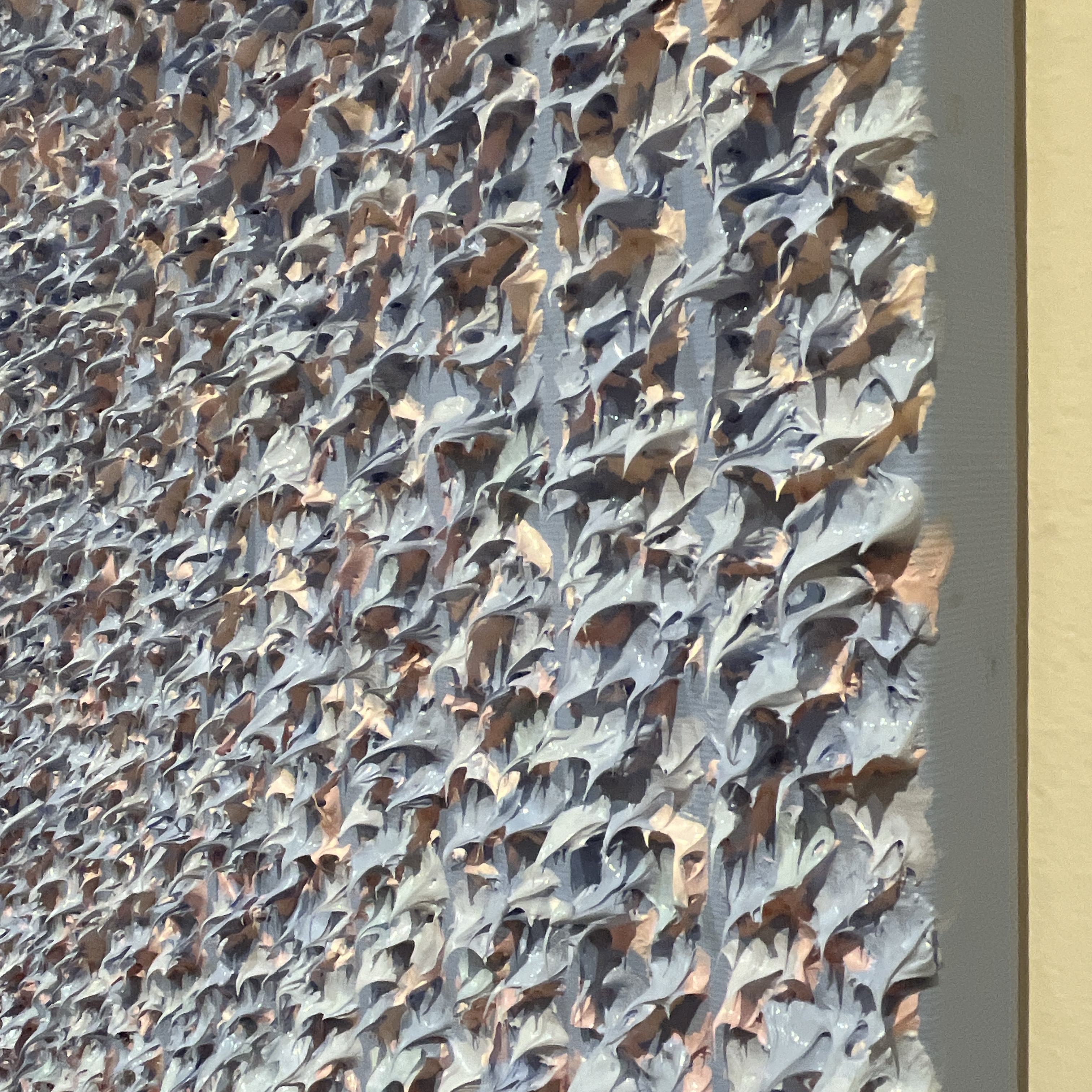 유화 물감을 희석하지 않고 붓으로 찍어 만든 김한영의 여러 작품도 인상적이다.